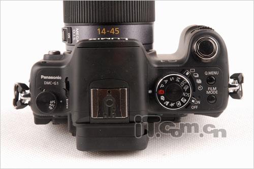松下G1顶部采用双转盘设计,模式切换就是靠它们协同来完成的。机身左肩的转盘主要是用于单次自动对焦、人工智能伺服自动对焦和手动对焦三种不同模式之间切换。机身右肩的转盘则是在各个拍摄模式以及情景模式之间切换,从密密麻麻的模式转盘中也能从另一个侧面反应G1的拍摄乐趣。