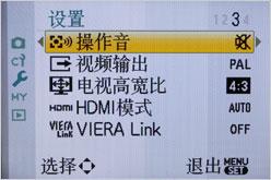 系统设置则和松下消费级数码相机没有区别,但需要提醒的是,由于G1拥有HDMI接口,支持高清输出的,所以之前要进行对应的设置,否则显示效果会有偏差。