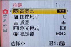 通过Q MENU键配合五维方向键,可以快速的调整屏幕上沿的各种拍摄参数。防抖模式有三档可选。智能曝光功能可以检测画面中每一个部分的亮度水平,并提高曝光不足区域的曝光值。