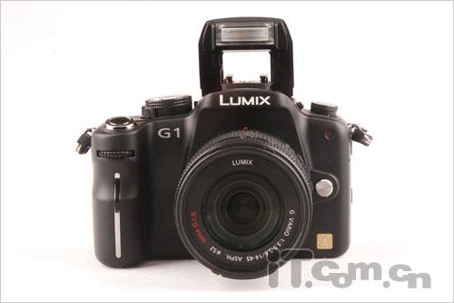 松下G1的内置闪光灯可以抬起到比较高的高度,有效闪光范围 GN11,支持前帘同步和后帘同步,覆盖范围比较广,对付一般场景足够。内置闪光灯需要手动开启,松下G1还具备热靴接口。