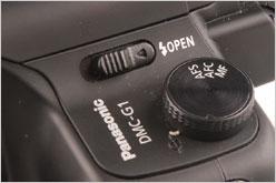 考虑到操控,松下G1在手柄前端也设计了一个拨轮,除了可以控制光圈、快门等参数外,它还可以像鼠标滚轮一样朝下按,用来在各主要拍摄参数之间切换,例如曝光补偿。这个设计新颖且实用,值得推广。