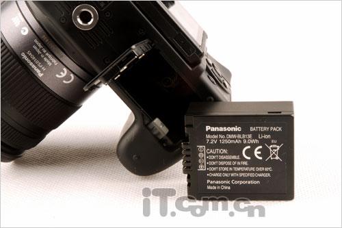 电池舱位于手柄处下方,供电方面,松下G1配备了一块7.2V/1250mAh的锂电池,电池很厚重,当然这也在续航时间上得到了体现,按照CIPA标准,使用LCD显示屏全程取景可以拍摄330张,而实测结果在250张左右。LCD是耗电大户,相比单反来说G1的电池续航能力没有优势。