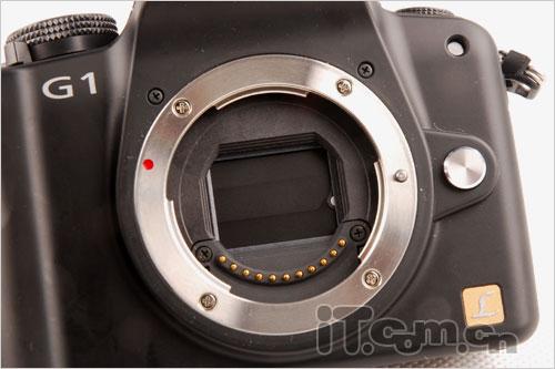 把镜头取下,没有了反光镜结构的松下G1显得更“简单”,Live MOS传感器直接暴露在外。当然,这也直接体现在曝光方式上。