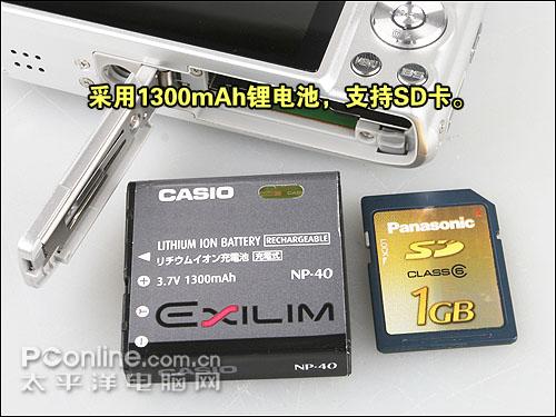 卡西欧Z300支持SD/SDHC,机身自带38M内存,采用一块NP-40的锂电池,容量为1300mAh,在消费级卡片机中可谓是非常大的了,基于测试续航能力可达300张左右,续航能力良好。