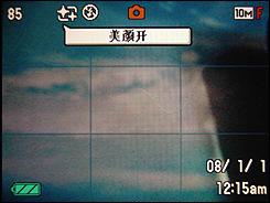 另外,如果厌倦了传统的红绿方框来提示聚焦情况,那么你可以在Z300上选择其他图案来代替,如一个心形聚焦框,倘若聚焦成功会显示一个完好的心,相反则显示心碎的图案,还挺有趣的。美颜模式就在前面介绍过了,这里展示一下它的拍摄界面给大家看看。