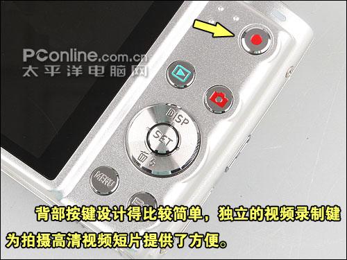 卡西欧Z300背面使用了一块3.0英寸23万像素的LCD,显示屏占据了绝大部分空间,不多的几个按键设计在右侧。在靠近拇指手持位置的地方,我们可以看到一个视频录制键。卡西欧的大多数相机都是把拍摄和回放按钮分开来设计的,初次使用的用户需要时间去习惯。