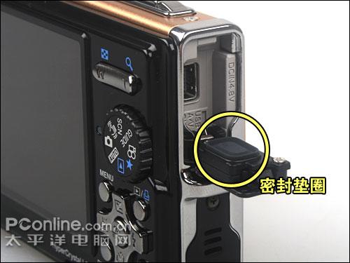 奥林巴斯μ1050的关键接口位置都有密封塑料垫圈保护,提供充分的防尘防水能力。LCD表面经过硬化处理,防刮防撞能力较强。