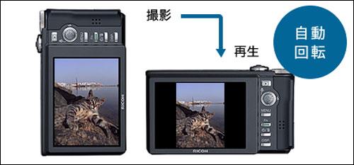 理光R10在浏览影像时可根据机身位置变化产生影像自动回转,使得你在任何角度都得以浏览影像。
