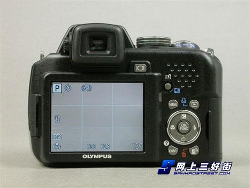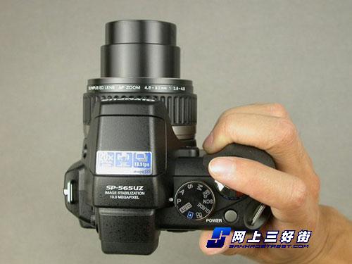 奥林巴斯SP565UZ虽然外观大致看起来和SP570UZ属于同一类型的大炮样式,但细节上的差别还是很多的。奥林巴斯SP565UZ镜头上的橡胶环完全是起到防滑和装饰作用,并不能像SP570UZ那样转动进行变焦操作。SP565UZ的手柄也比SP570UZ略小,手感没有那么饱满了,不过大面积的蒙皮依然保证了出色的防滑性,但机背拇指处的贴皮在SP565UZ上也被省掉了。奥林巴斯SP565UZ的外观尺寸为116×83.3×80.8mm,重量为373g。