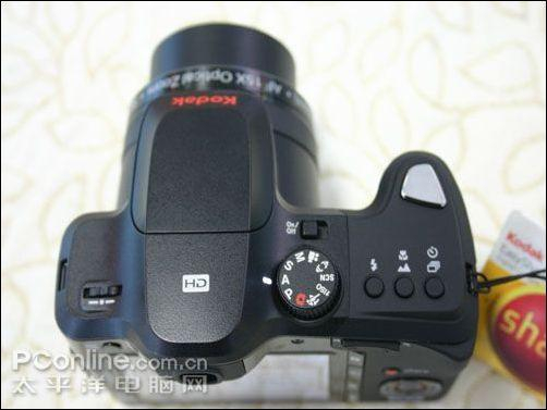 柯达Z1015全身采用工程塑料材质,机身外观富有棱角,秉承柯达一贯的外型设计,与日系相机在外观上也有较明显的差别。手柄部位采用了橡胶材质蒙皮,握持时可以有效增加摩擦力。而左肩上别出心裁的设计了一个拨轮,功能与大部分相机的操控拨轮并无区别,只是使用起来可能需要适应。
