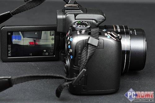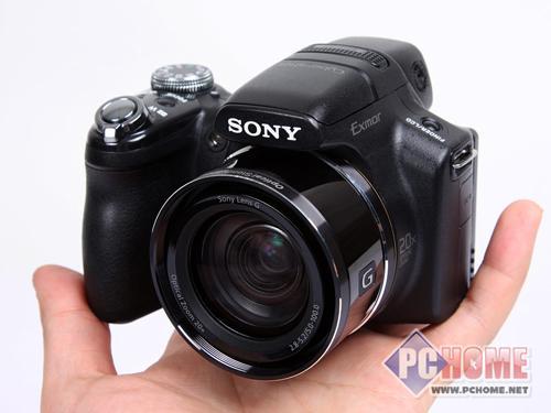 HX1的外观设计依然是延续H50的索尼典型长焦风格,全黑的机身显得它的专业性。虽然为塑料材质,但可以感到非常坚固,各部件之间结合紧密,做工优秀。机身右侧宽大的手柄覆盖有橡胶贴皮,加上机身背后拇指处的防滑颗粒,HX1在拍摄的时候拍摄者可以感受到设计的优越性很人性化。