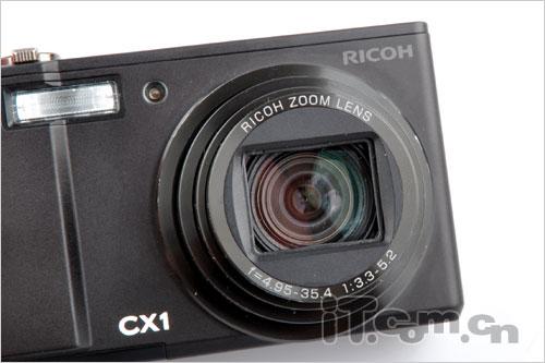 镜头部分是理光CX1的一大卖点,这也是从R系列沿袭下来的。该机采用一枚7.1倍光学变焦的镜头,结构为7组10片,其中包括非球面镜片4片,焦距相当于28-200mm,最大光圈F3.3-5.2,最近对焦距离为1cm,涵盖日常生活的大部分常用焦段。28 mm广角镜头拍摄能够强调图像广度和深度,200 mm远距拍摄能够拉近远处拍摄对象,同时模糊背景,可远可近,属全能型表现。