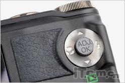 和理光R系列机型按键布局有所不同,ADJ.多功能选择器被转移到机身右上角,可以实现曝光补偿、白平衡和ISO感光度等四种常用功能,大拇指控制非常方便,而且在它的左侧,理光特别增加了一块蒙皮,在不进行操控的情况下,有助于利用大拇指提升握机的稳定性。