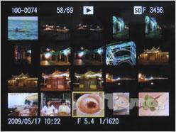 在回放模式下,直方图和Exif信息的提供,有助于判断照片曝光是否正常。一整屏可同时显示81张照片,方便搜索,而且切换图片的速度很快。