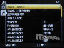 之前,在介绍机身背面按键布局的时候,就特别强调,理光CX1在功能设定上有很大的自由度,这在菜单中也有直接体现,ADJ.按键和Fn按键的功能均可以由用户自己调整。