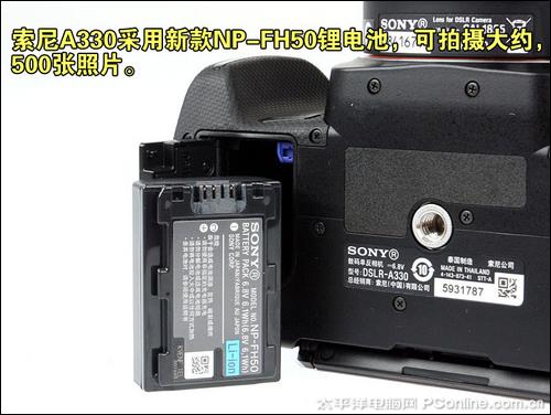 索尼A330采用全新的NP-FH50锂电池,具有6.1Wh的电量,官方称一次充电可拍摄500张,据小编实际使用,拍摄400多张后电池显示电量不足,对于一般用户的日常使用完全没有问题。