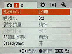 索尼A330具备了丰富的场景模式,在切换模式转盘的同时,显示屏也会显示相应的模式,并有详细注释,方便入门用户了解功能。大部分的相机设置都在主菜单中选择,按下MENU键即可启动,从菜单中可见,索尼A330需要设置的内容相当精炼,描述也比较浅显易懂,适合入门用户,但像反光板预升这样的单反常见功能却不见有设置项,相对来说,索尼A330的功能设定过于偏向入门用户。