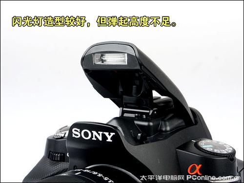 流线型机身设计的索尼A330,闪光灯的造型同样时尚,但是弹起高度不足,对于使用长焦相机来说,会有画面光线被遮挡的问题。且闪光灯的开启需要进入菜单设置,或是设定闪光自动让相机自动判断是否打开闪光灯,完全针对入门用户,对于习惯单反操作的朋友来说相当不便,这一点也体现了A330的针对人群为入门级别。
