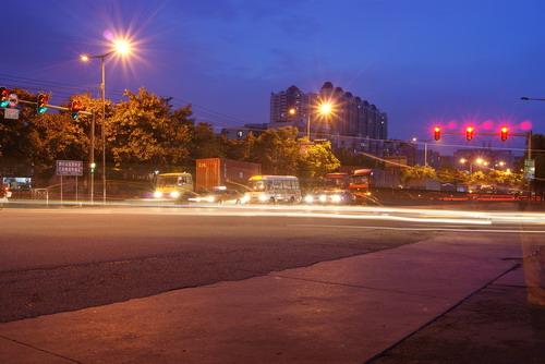 上图夜景照可以发现,索尼A330在夜晚灯光下拍摄画面偏红,但色彩丰富,天空的蓝色也表现得相当好,画面细节丰富,点光源呈现星光效果,但在长时间曝光下,光源部分的眩光现象明显,交通灯有明显偏移的光斑。