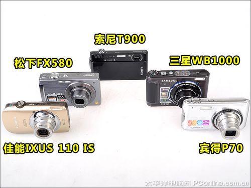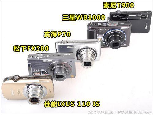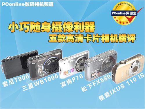 参加本次高清卡片相机横评的有:佳能IXUS110 IS (资料 报价 图片 论坛) 、松下FX580 (资料 报价 图片 论坛) 、宾得P70 (资料 报价 图片 论坛) 、三星WB1000 (资料 报价 图片 论坛) 、索尼T900 (资料 报价 图片 论坛) 。尽管五部机型都是小巧的卡片相机,全部都可以拍摄1280x720高清视频短片,但五部机型除了静态照片拍摄和动态短片拍摄的差别之外,还有相当多的差别,可以说是各有各的侧重点。例如某些机型侧重性能,而外观或者体积方面就比较一般;某些机型侧重时尚的外观设计,功能方面则较为简单。各有各的侧重点,各位可以根据自身的需要来选择适合的机型。至于哪些型号偏向哪种表现,还请留意下面的详细评测内容。