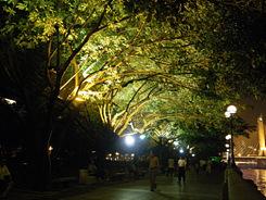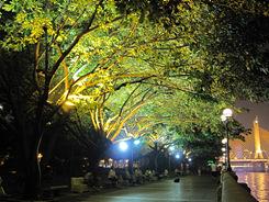 由于每台相机都需要一定的设置和拍摄时间,所以在黄昏之际拍摄夜景很难保证所有照片都在一个极短的时间范围内完成。在这五台机器当中,松下FX580和三星WB1000较容易产生星芒效果(只是在P档模式下拍摄,并不是采用M档),其他机型都无法实现。