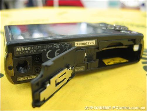尼康S620的机身尺寸为约90 × 53 × 23 mm,重量约146g。机身内置45M内存,USB 2.0接口传输,支持SD卡,SDHC卡,使用更加方便。电源采用可充电锂电池EN-EL12供电。