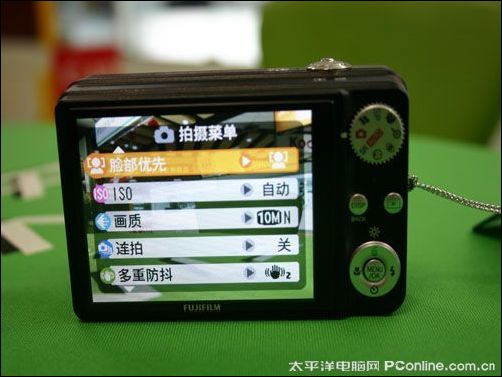 富士J250机身背部配备了一块3.0英寸23万像素的显示屏,画质效果上比较一般,支持11级亮度调节,而且该屏幕具备节能功能,可以在相机闲置时自动降低亮度以节省电力。