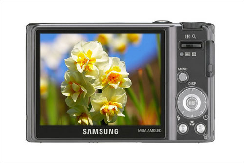 三星WB1000是一款性能比较齐全的广角DC,也是三星09年卡片相机的旗舰机型。它除了配备了24mm广角5倍光学变焦的施耐德认证镜头,还集合了全手动曝光,HD高清摄像等功能。这是一款极为少见的以宽大的AMOLED显示屏为卖点的DC,屏幕达到1000:1高分辨率,3.0英寸,51.8万像素。