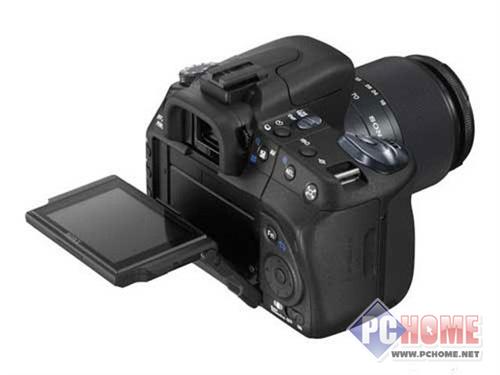 索尼α500 (资料 图片 论坛) 的机身仍然是黑色塑料材质,手柄采用饰皮纹理材质,一定程度上能防止握持时的松动。3英寸翻转液晶屏均具备Live View实时取景功能,内置闪光灯。