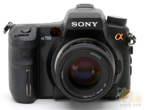 索尼α700是索尼的首款中端单反相机,也是继A100之后的第二款单反相机,索尼α700的机身较大,手柄处蒙有橡胶,握起来手感较好。值得注意的是索尼α700定位于中端,但是机身上并没有机顶液晶屏,所有参数全靠机背的液晶屏来显示,这点与佳能尼康同等级的相机来说略差。
