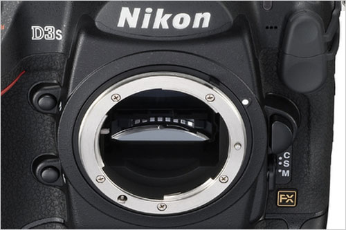 在镜头卡口上,这款机器适用于所有的尼康卡口镜头,这一点比佳能的全画幅数码单反相机要强不少,毕竟在小场镜头的兼容性上,尼康还是有着一些很新的想法,采用了缩小像素,屏蔽感光器尺寸方式来兼容自己旗下的DX镜头,也比佳能完全不能兼容EF-S镜头要来的好。以尼康D3s为例,在使用DX镜头之后,有效像素最大尺寸图像为2784 × 1848,即便是这样,也算是厚道了。