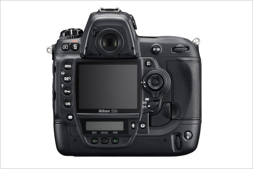 在外形上,D3s和D3是使用的同一个机身设计,上边有着我们非常熟悉的元素。而这款相机既然是定位在专业单反上,整个机身采用了竖拍手柄和机身结合为一体的设计,看起来,就已经非常有气势,想想我们熟悉的F5,F6,那是何等的气派。而D3s也同样拥有。
