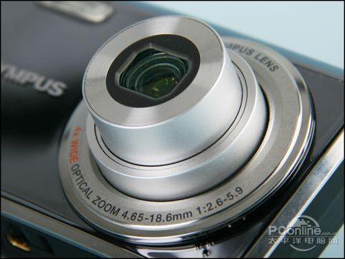 配上4倍广角光学变焦镜头是奥林巴斯FE-4000的最大亮点之一,其焦距等效于135相机的26.3-105mm,同时配有光学防抖,比前代产品的36毫米广角端有了很实用的提升,广角端的最大光圈达到F2.6,比较难得。不过小编发现奥林巴斯FE4000的镜头并没有像一般相机镜头一样向外的凸透镜,而是向内的凹透镜,但是广角端的暗角是比较明显的,可能与之有关。