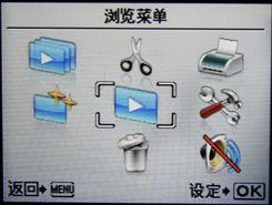 回放菜单则显得比较简单,相机设有后期添加效果、裁剪、打印等功能。