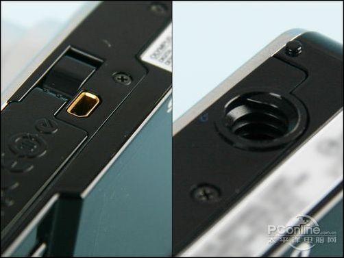 机身底部是电池仓跟数据线接口还有三脚架接口,三脚架接口使用了塑料材质。
