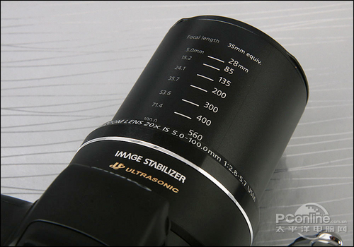 外观方面,虽然比起旧作SP-570取消了外接闪光灯的热靴和镜头上的金属材质电子环,略减了机器的专业气息,但是它的26倍光学变焦是当今大变焦DC的焦距冠军。