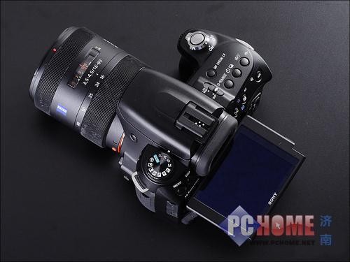 92万像素的屏幕对于数码单反来说已经不稀奇,即便在入门产品中,先前也已经有佳能500D配备,但将92万像素分辨率和翻转屏结合起来,α550还是开创了先河。翻转屏采用类似于α350的设计,转轴位于屏幕顶端,可以实现上下90度的翻转。并且机身内部设计有感应器,当采取竖拍姿势时,显示内容会转动为水平,更加便利。