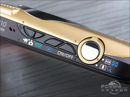 由于机身背面倍触摸屏完全占据,所以佳能IXUS 210的物理按键设置在顶部,不规则的按键形状带来了更时尚的外观。模式切换采用拨杆设计。