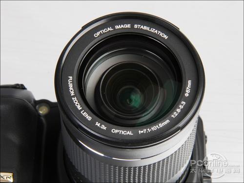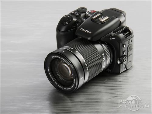 除了手柄处的人造皮革材质,机身主要是工程塑料制造,不过由于质感处理并不十分出色,塑料味比较重,跟一些入门单反的质感相比,还是有一定的距离。整机尺寸达到133.4×93.6×150.4mm,重约835g,比前代产品轻了94克。配上14.3倍光学变焦的富士龙镜头,整体还比较协调。