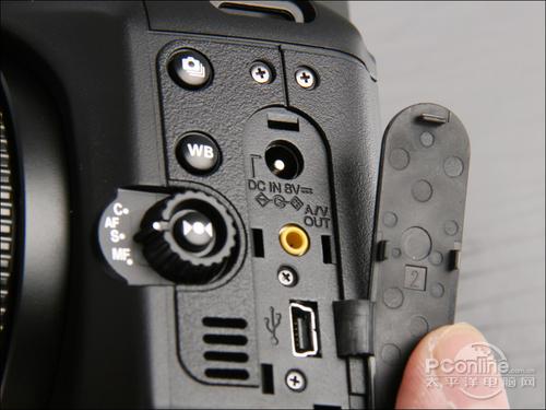 机身的左侧连接镜头部分有一个对焦模式功能转盘,使用起来非常方便。S205EXR同时提供手动对焦,对焦环使用起来阻尼适中,操作性不错。相机左侧还有连拍按钮、白平衡按钮的快捷键,在拍摄时按住该键,再转动相机的指令转盘就能切换不同的白平衡和连拍模式。另外橡胶包裹着电源接口、AV输出接口和USB接口。另外用于视频播放的扬声器也在机身的左侧。