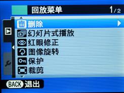 照片回放提供按日期、九宫格、两张等查看模式。另外在回放菜单中可以实现一些简单的图片处理,例如红眼修正、裁剪等。