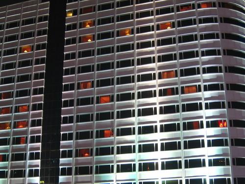 在此类大场景样张中,可以很明显地感觉到松下LX3的等效24mm广角与佳能S90等效28mm广角的差距所在,不过在夜景拍摄中,广角越大,画面内容越多,光线也就越复杂,这对相机的测光也是一个考验,这里松下LX3在自动测光下的画面明显偏暗了,虽然如此,但LX3的紫边控制依然较好。