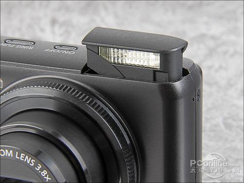 从闪光灯的外观设计来看,它与松下LX3非常相似,不过在使用方法上却有些不同,佳能S90的闪光灯在用户使用菜单选择之后会自动升起,如果在菜单里禁止了闪光的话,闪光灯会马上自动缩回进去,关闭闪光灯不需要用手把它按下,这与松下LX3闪光灯有所不同。