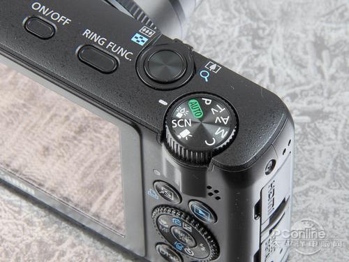 佳能S90的模式上齐备了M、Av、Tv和P档,表现出它的专业定位,另外我们还可以看到位置绿色的智能自动模式另一边的“低光照模式”作为独立的一个模式被放置出来,通过此模式,我们可以在光线非常不足的时候使用机器最高ISO12800的高感光度。