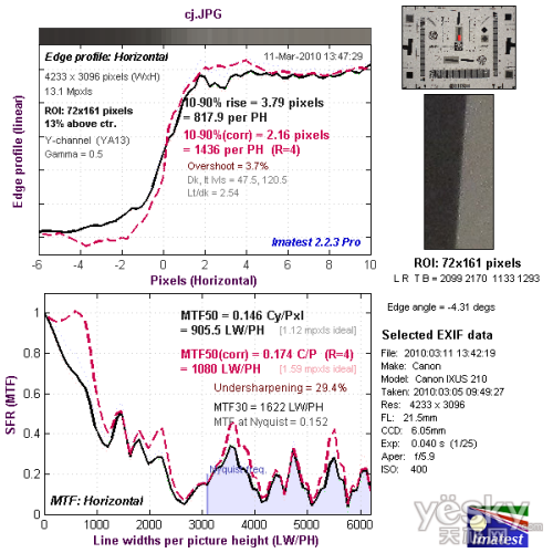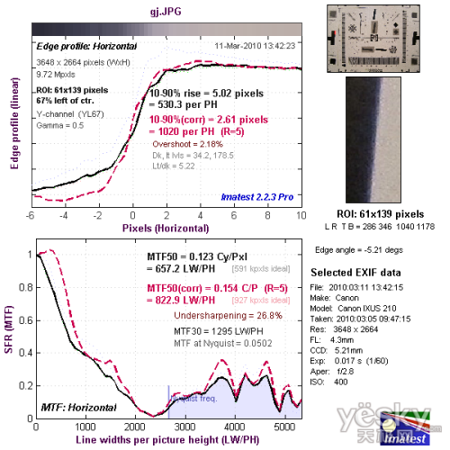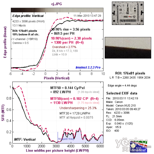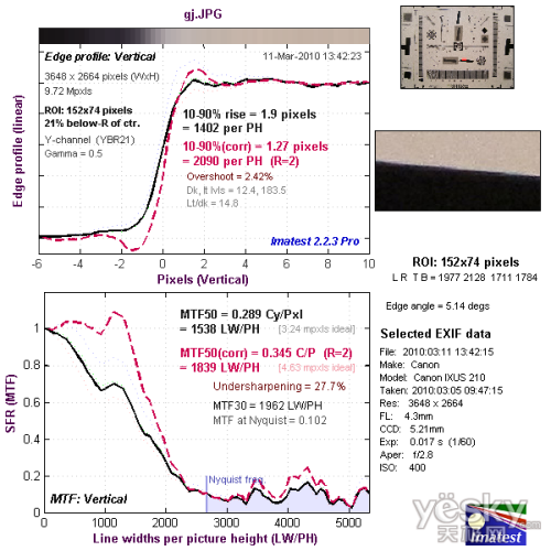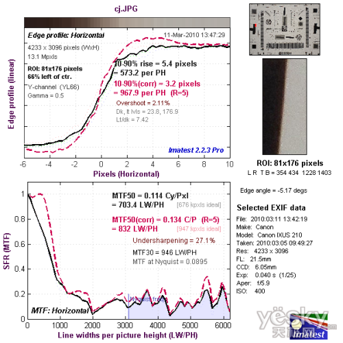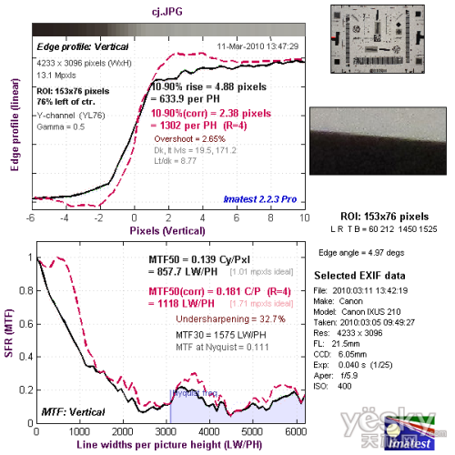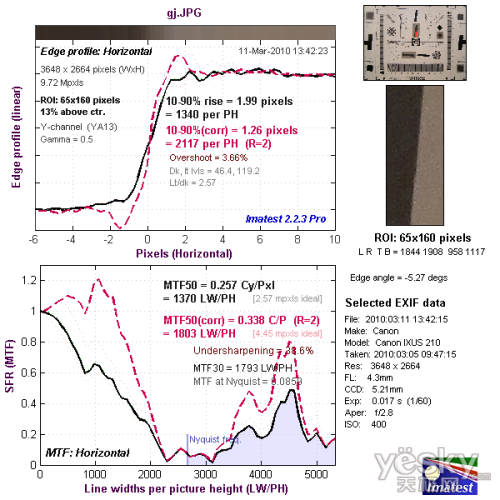我们使用Imatest对佳能 IXUS 210的镜头分辨率与?1ff8 ?⑶榭鼋?辛瞬馐裕?蠹铱梢越?馐运?玫姆直媛式峁?肷贤急曜冀?斜榷裕?佣?竦弥惫鄱?魅返牟慰肌?/p>