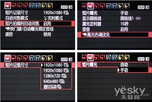 佳能EOS 550D全新搭载的功能众多的功能。如7倍数码变焦短片裁切、短片拍摄专用菜单、全手动控制等等。相比500D在1080p下20fps的拍摄性能,虽然佳能550D只提高了5fps,但是这5fps却让视频的流畅度有了质的提升。