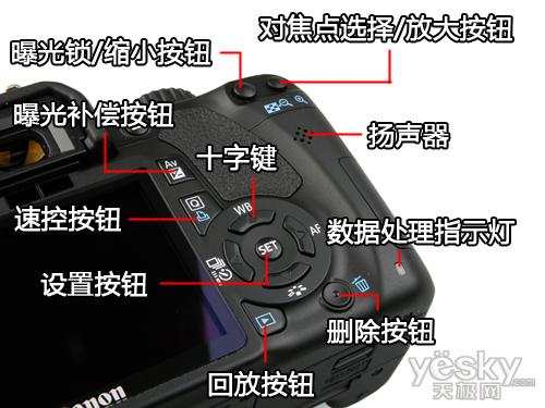 如果说550D机身正面的设计没有给我们带来足够的惊喜的话,那么接下来我们看到的背部设计,应该会让你感到震惊。