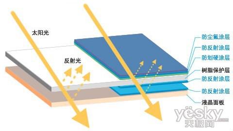 佳能550D背面液晶监视器的表面上涂布了5层涂层。特别是防反射涂层,通过在液晶面板上施加1层以及树脂保护层2面各施加1层,共3层防反射涂层来降低反射光。在晴朗的屋外,背面液晶监视器的光线反射得到抑制,确保了其良好的可视性。此外,为了防止灰尘等污物的附着施加了1层氟涂层。不仅如此,为了防止划伤更是施加了1层硬涂层,5层涂层分别作用确保了清晰的液晶显示画面。
