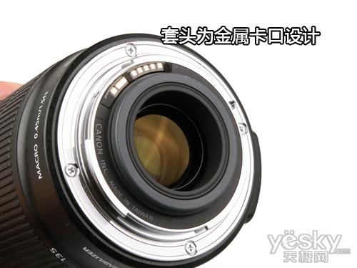 我们看到,EF-S 18-135mm f3.5-5.6 IS镜头尾部使用的是金属卡口的设计。牢固坚硬的金属开口设计,可以更好的保护镜头乃至相机的使用寿命。