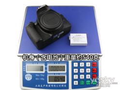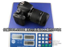 我们将550D机身放在电子秤上称重,含电池的机身重量为540克。如果配上18-135mm套头的550D套机的重量则在985克左右。这样不到两斤的总重量,还算是比较轻便的。